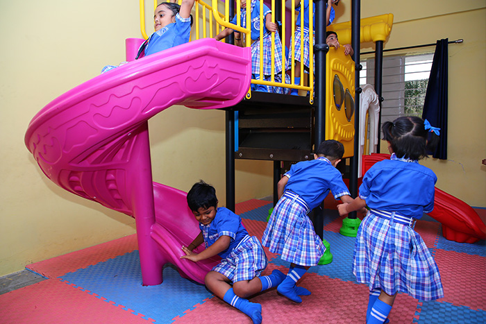 There is a lot more to education than just textbooks. We make sure that our students learn real-life skills at a very young age by conducting interactive sessions and activities in our AV room and play home.